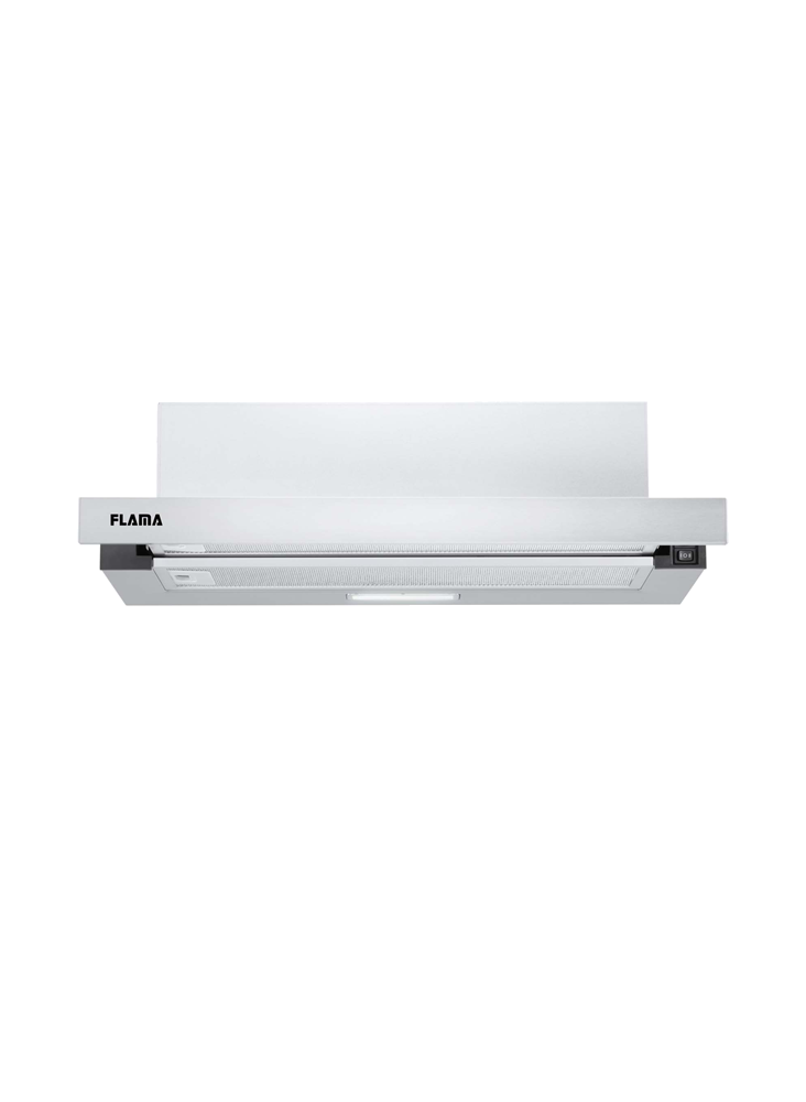 Tipo de exaustor: TelescópicoØ saída (mm): 600 mmTipo de luz interior: LEDTensão (v): 220/240 vFrequência (Hz): 50 HzPotência máxima exaustor (W): 66,5 WN.º de motores: 1Estilo: TelescópicoPotência do motor (W): 65 WConsumo de luz interior (w): 1,5 WVálvula anti retornoDimensões: 50 cm x 27,6 cm x 14 cmConsumo anual de energia (kWh/a): 29,7 kWh/aClasse de eficiência energética: BEficiência dinâmica dos fluidos: 13,8Classe de eficiência dinâmica dos fluidos: DEficiência de iluminação: 45Classe de eficiência de iluminação: AEficiência de Filtragem de gorduras: 72,8Classe de eficiência de filtragem de gorduras: DCaudal de ar (velocidade mínima em utilização normal): 232Caudal de ar (velocidade máxima em utilização normal): 329Nível de potência sonora com ponderação A (velocidade mínima em utilização normal): 55Nível de potência sonora com ponderação A (velocidade máxima em utilização normal): 60Número de filtros: 1Descrição do filtro: Aluminio 5 camadasNúmero de velocidades: 3