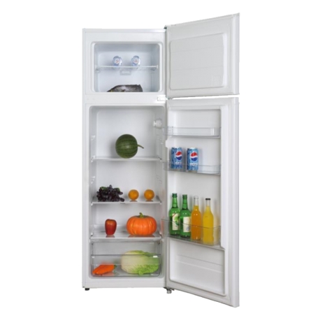 Descongelação automática no frigorífico Termostato regulável Luz interior Quatro bandejas de vidro reguláveis em altura Uma gaveta transparente de grande capacidade para legumes Três prateleiras extraíveis na porta Portas reversíveis Rodas traseiras para movimentação e pés dianteiros reguláveis em altura Pés dianteiros reguláveis em altura Puxador integrado Classificação energética F Nível de ruído (dBA): 40 Consumo de energia anual (kWh/ano): 221 Autonomia do congelador (h): 15 Capacidade de congelação (kg/24 horas): 2 Capacidade do frigorífico (líquida): 163 litros Capacidade do congelador (líquida): 41 litros Medidas exteriores: 1.430mm (A) x 550 mm (L) x 550 mm (P) Cor: Branco