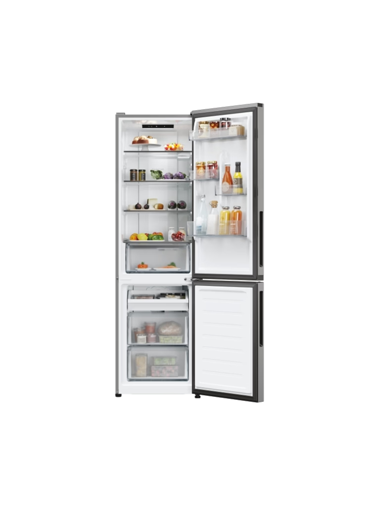 Tipo: Combinado Classe de eficiência energética: E Tecnologia: Total No Frost Volume total útil: 279 l Cor / material da porta: Inox CARACTERÍSTICAS ESTRUTURAIS E FUNCIONAIS Volume útil do frigorífico: 197 l Volume útil do congelador: 82 l Dobradiça com auto stop a 125º Número de compressores: 1 Tecnologia: Total No Frost Circle Fresh Sistema de descongelação do frigorífico: Automático Sistema de descongelação do congelador: Automático DESIGN EXTERNO Design externo Cor / material da porta: Inox Cor / material do corpo: Castanho cinza Pegas das portas: Integradas CONFORTO DE UTILIZAÇÃO Comandos: Eletrónicos Temperatura no interior (frigorífico/congelador): 2º a 8º/ -16º a -22º Função alarme de porta aberta EQUIPAMENTO DO FRIGORÍFICO Iluminação por LED no interior: Sky Led Nº de prateleiras em vidro ajustáveis: 3+1 Nº de prateleiras na porta: 4 Área Fresh 0º Suporte para garrafas em metal EQUIPAMENTO DO CONGELADOR Nº de gavetas de congelação transparentes: 2+ Tabuleiro Easy Access DESEMPENHOS Classe de eficiência energética: E Classe de eficiência de ruído: C Consumo de energia anual: 237 kWh Nível de ruído: 38 dBA Capacidade de congelação em 24h: 4 Kg Autonomia: 11 h Classe climática: SN/T (10º-43ºC) Gás refrigerante: R600a Número de estrelas do congelador: 4 OUTROS DADOS Pés ajustáveis/rodas: 2/2 Portas reversíveis Dimensões do produto AxLxP: 182,5x54,5x60,2 cm