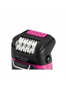 Tecnologia Soft Sensation para uma depilação sem dor: combina a acção de um sistema dessensibilizante e um fluxo de ar fresco contínuo,