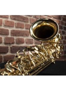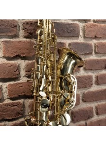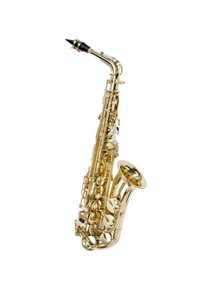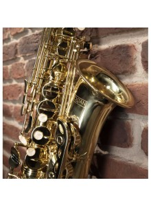 Saxofone Alto em Mib. Corpo e chaves: latão dourado. Molas: aço endurecido. Chave de Fá# agudo. Mecanismo articulado Do# - Sib. Sapatilhas: couro com ressonadores de metal. Acabamento: lacado. Acessórios incluídos: Bocal, pano limpador e estojo duro com correias e bolso.