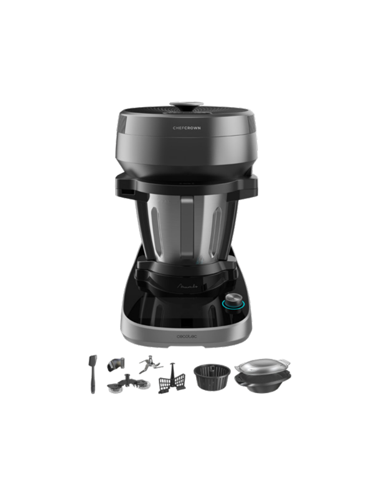 Composição: Robô de cozinha; Jarro de aço inoxidável Victory XL; Dispensador automático de alimentos ChefCrown (tampa, grelha da tampa amovível, carrossel de compartimentos, anel de