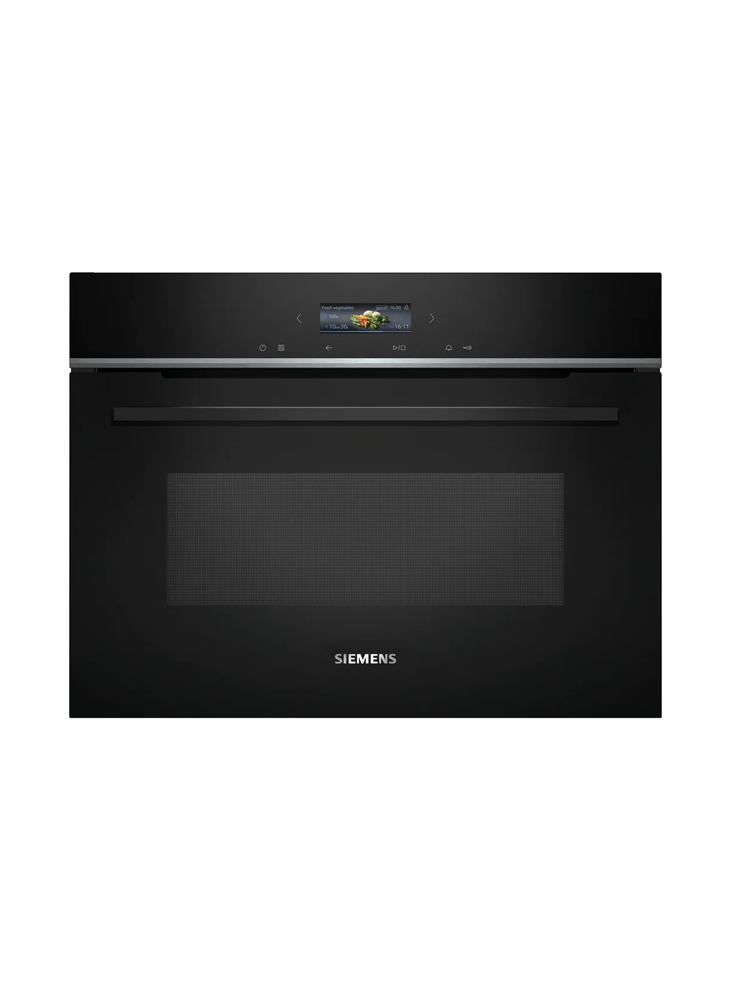 MICRO-ONDAS E MODOS DE AQUECIMENTO Potência máxima: 1000 W; 5 níveis de potência do micro-ondas: 90 W, 180 W, 360 W, 600 W, 1000 W Tecnologia innoWave: a potência máxima do micro-ondas é regulada para se manter nos 600 W em caso de utilização prolongada, de forma a manter a qualidade dos alimentos Potência grill 1.9 kW Níveis de potência da combinação Grill e micro-ondas 90 W, 180 W, 360 W, 600 W DESIGN Cavidade em Inox com vidro TouchControl Controlo por sensores de toque LIMPEZA Teto catalítico HumidClean CONFORTO Relógio eletrónico, com regulação da duração e fim de confeção Electrónico, TFT-Touchdisplay Eletrónica de fácil utilização: para uma seleção muito simples e cómoda de todas as funcionalidades CookControl 10 (programas automáticos) 3 programas de descongelação e 4 programas na função micro-ondas. QuickStart: um clique para maximizar a potência do micro-ondas durante 30 segundos Iluminação interior em LED 36 l capacidade Porta do forno com abertura rebatível, softClose SEGURANÇA E AMBIENTE Desligar automático de segurança do forno, Tecla de início/fim, Interruptor contacto da porta Turbina de arrefecimento INFORMAÇÃO TÉCNICA Comprimento cabo elétrico: 150 cm Potência de ligação 3.1 kW Tensão nominal: 220 - 240 V Instalação em armário superior, armário inferior MEDIDAS Dimensões do aparelho (AxLxP): 455 x 594 x 564 mm Dimensões do nicho (AxLxP): 450-450 x 560-560 x 550 mm