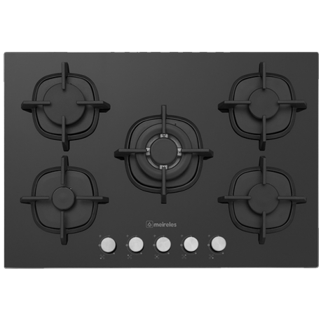5 QUEIMADORES A GÁS C/ 1 QUEIMADOR WOK - 75CM - 11,3kW - VIDRO PRETO - G. NAT