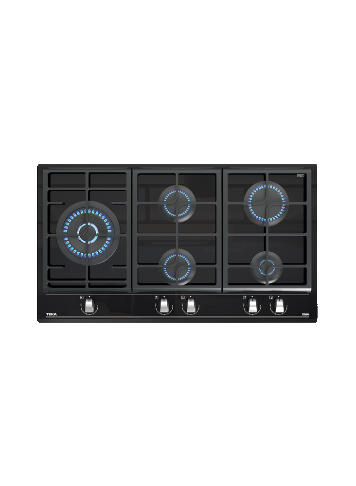 5 QUEIMADORES GÁS - 90CM - 10,95kW - PRETO / BISELADO FRONTAL